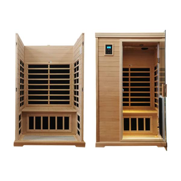 Traditional Infrared Wooden Sauna Room 2-Person Size Heating 1750W 9 Plates 10 Min Pre-Warm Up Time And Temperature Preset Control Images |
